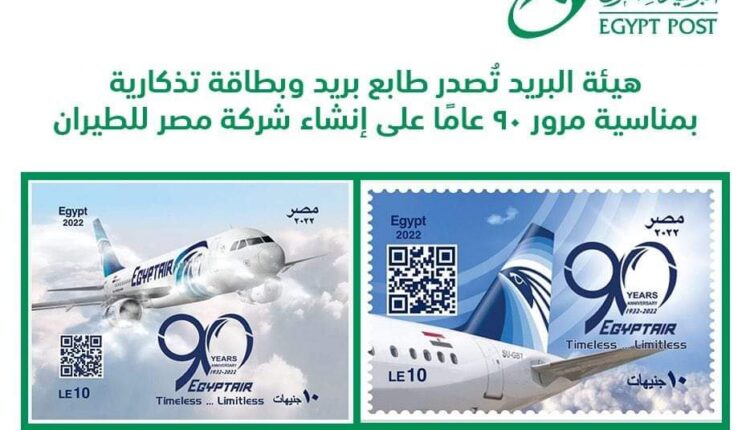 الهيئة القومية للبريد تقوم بإصدار طابع بريد وبطاقة تذكارية بمناسبة مرور ٩٠ عامًا على إنشاء شركة مصر للطيران