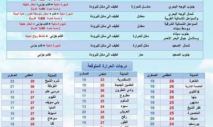 تعرف علي النشرة الجوية غدآ الثلاثاء