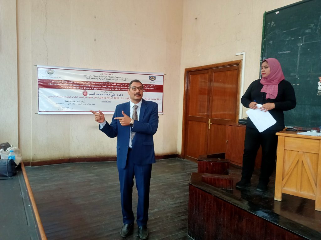 حيث تم عقد السيمنار الخاص بالباحثة “دعاء علي قاسم” المسجلة لدرجة الماجستير بقسم الدراسات البيئية والصحراوية بالمعهد،