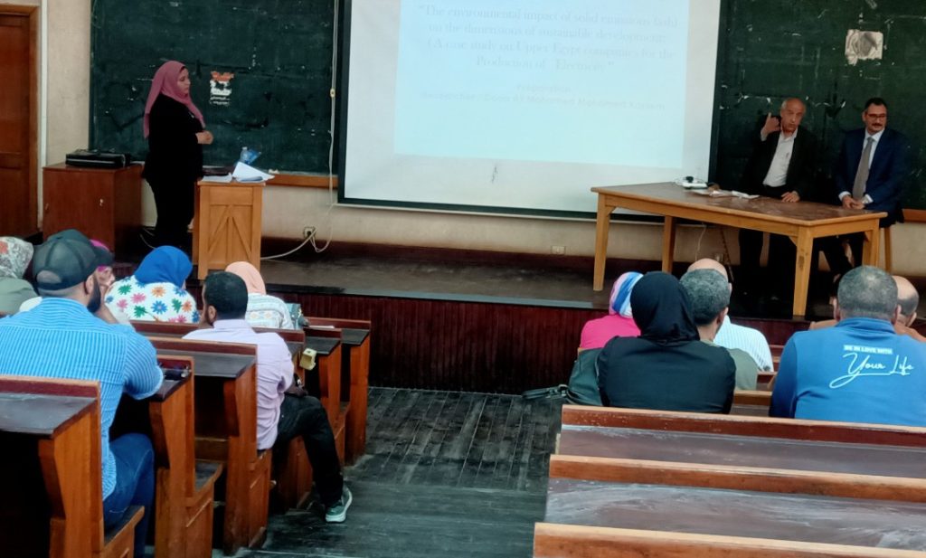 معهد الدراسات العليا والبحوث البيئية بدمنهور ينظم سيمنارآ لمناقشة النقطة البحثية لإحدى باحثيه