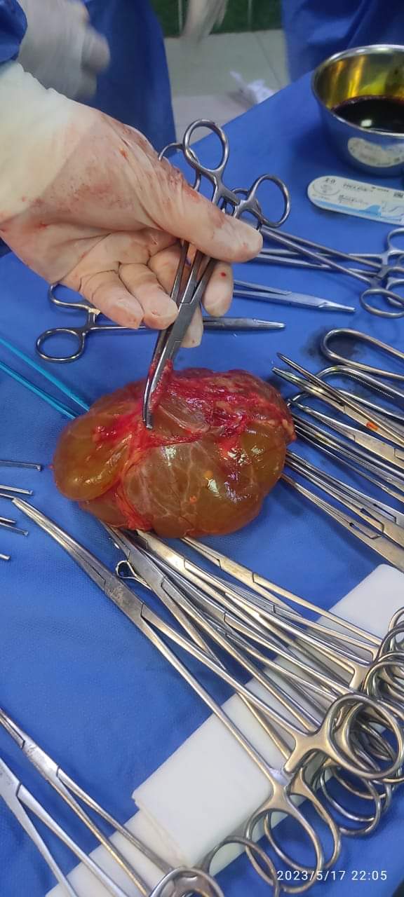 حيث قام أطباء قسم الجراحة العامة بالمستشفى بإجراء استكشاف جراحي واستئصال الورم التكيسي من البنكرياس بحد أمان من الأنسجة المحيطة،