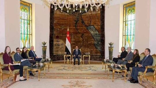واستقبل عبد الفتاح السيسي كلا من السيناتور كريستوفر فان هولين والسيناتور جيفري ميركلي، عضوي مجلس الشيوخ عن الحزب الديمقراطي، وذلك بحضور وزير الخارجية المصري سامح شكري.