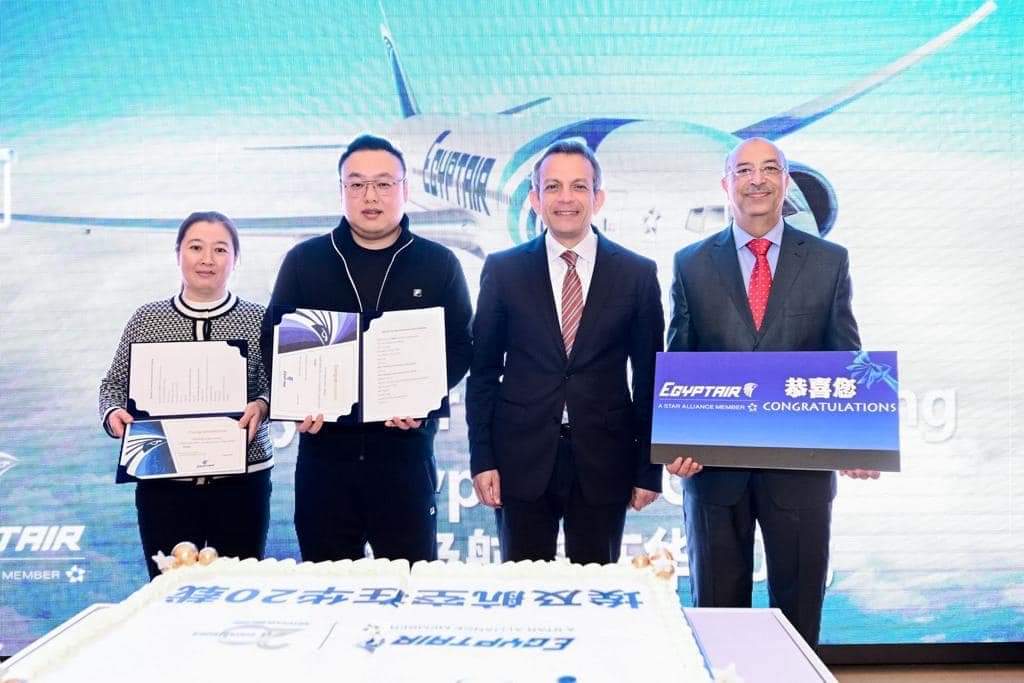 نظمت سفارة جمهورية مصر العربية في بكين بالتعاون مع المكتب الإقليمي لشركة مصر للطيران في الصين احتفالية بمقر السفارة بمناسبة الذكرى العشرين على انطلاق أول رحلات مصر للطيران إلى الصين، حيث شارك في الاحتفالية عدد كبير من المسئولين الصينيين وكبرى الشركات السياحة الصينية وممثلي وسائل الإعلام الصينية، كما تضمنت الاحتفالية تقديم هدايا تذكارية لأكبر ٢١ شركة سياحية صينية عاملة في السوق السياحي المصري.