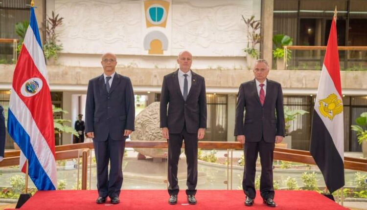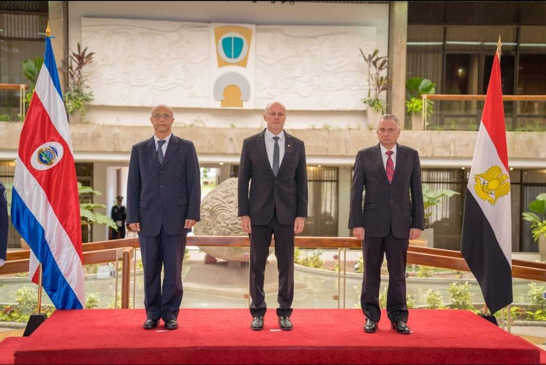 كما قدم السفير حازم حنفي أوراق اعتماده سفيرا غير مقيم لجمهورية مصر العربية لدى كوستاريكا للسيد نائب الرئيس ستيفان برونر يوم ٢٦ يناير الجاري في قصر الرئاسة بالعاصمة سان خوسيه، حيث عُقدت جلسة مطولة بحضور السيد وزير الخارجية أرنولدو أندريه تينوكو تناولت مجمل العلاقات الثنائية واهمية تطويرها، والفرص الكثيرة المتاحة في الاستثمار العقارى والسياحى، فضلا عن البنية التحتية من طرق ومطارات، وفرص مشاركة الشركات المصرية في المعارض التجارية المقامة في كوستاريكا لزيادة التجارة بين الجانبين. كما تم الإشارة الى تميز المنتجات المصرية في مجالات الانسجة والمنتجات الزراعة والصناعات الغذائية، ومواد البناء والأدوية والتكنولوجيا، وتزايد اعداد السائحين من كوستاريكا الى مصر خلال السنوات الأخيرة.