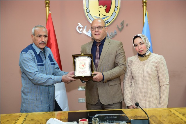 بعد تعيين ابنته معيدة بقسم الإعلام.. رئيس جامعة سوهاج يكرم «عم عمر»|صور