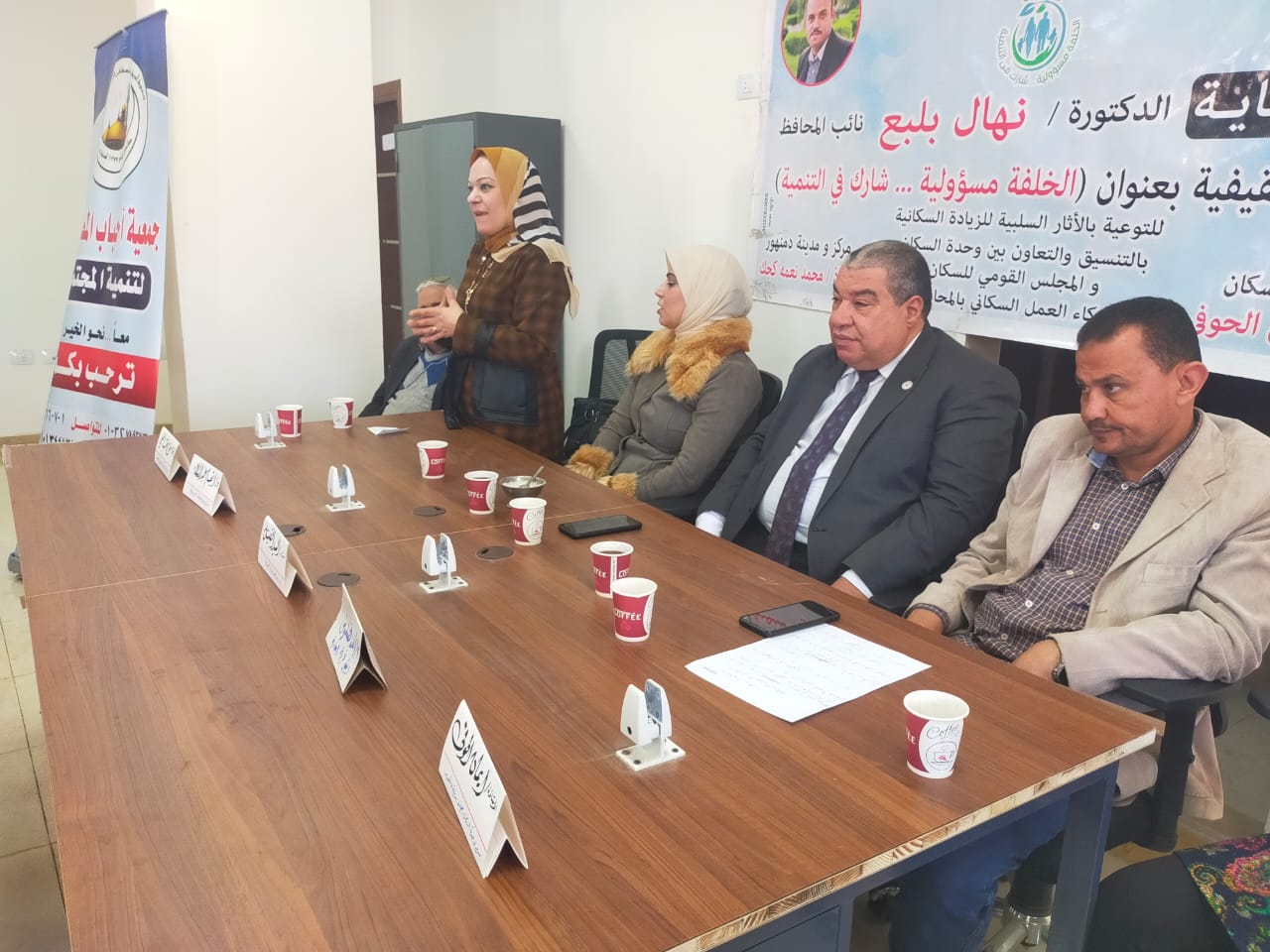 والدكتورة انعام عبداللاه استشارى العلاقات الاسرية والمستشار السيد الفيل نائب رئيس مجلس ادارة جمعية احباب المصطفى والمدير التنفيذى للاتحاد الشبابى لدعم مصر بحضور المهندس اشرف خليل نائب رئيس مدينة دمنهور والمهندس احمد قنطوش رئيس قرية الابعادية وفريق وحدة السكان بمجلس مدينة دمنهور