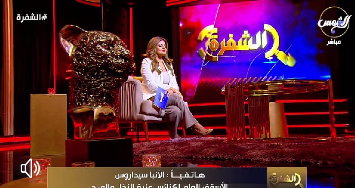 تواصل الإعلامية دينا أبو السعود تقديم برنامجها الشفرة الذي يعرض علي قناة الشمس 2.