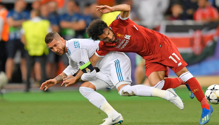 وحينها، تدخل قائد ريال مدريد سيرجيو راموس بقوة على كتف صلاح، مما تسبب في إصابة الفرعون المصري بالتواء في أربطة الكتف واضطر لمغادرة أرض الملعب باكيا.