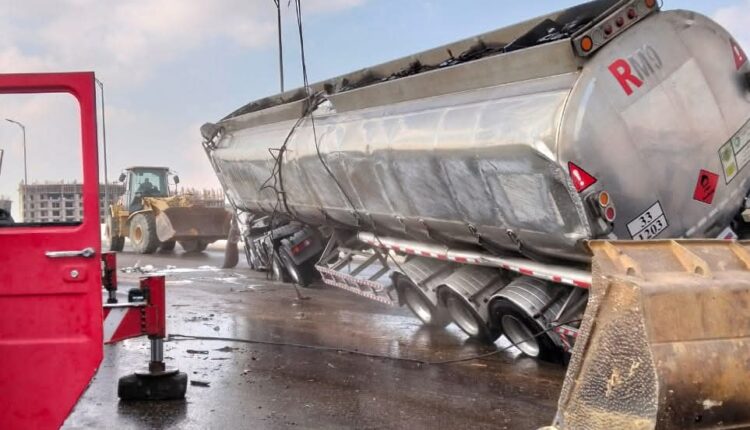 تفقد الدكتور إبراهيم صابر محافظ القاهرة موقع حادث انقلاب سيارة المواد البترولية أعلى الكوبري المؤدي إلى محور محمد على فهمى في الطريق القادم من محور الشهيد الداخل إلى الأسمرات.