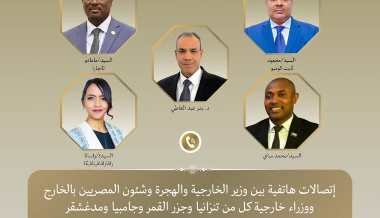 أجرى د. بدر عبد العاطي وزير الخارجية والهجرة، يوم الجمعة ٢٤ يناير سلسلة من الاتصالات الهاتفية مع كل من”محمود ثابت كومبو” وزير خارجية تنزانيا، و”محمد مباي” وزير خارجية جزر القمر، و”مامادو تانجارا” وزير خارجية جامبيا و”راساتا رافارافافيتافيكا” وزيرة خارجية مدغشقر.