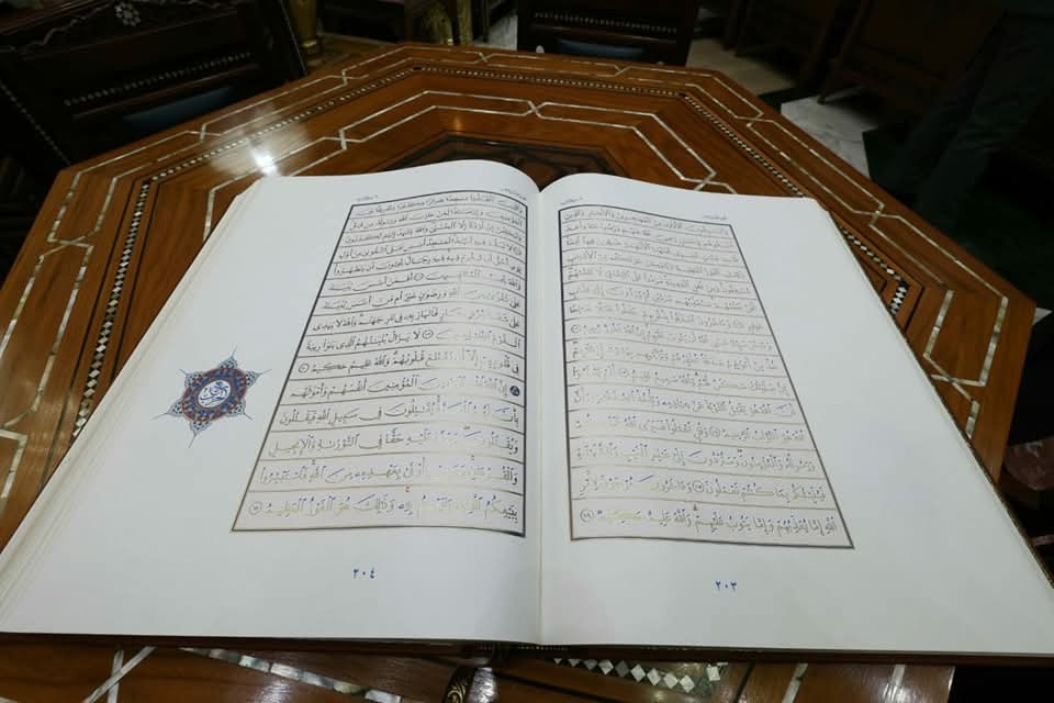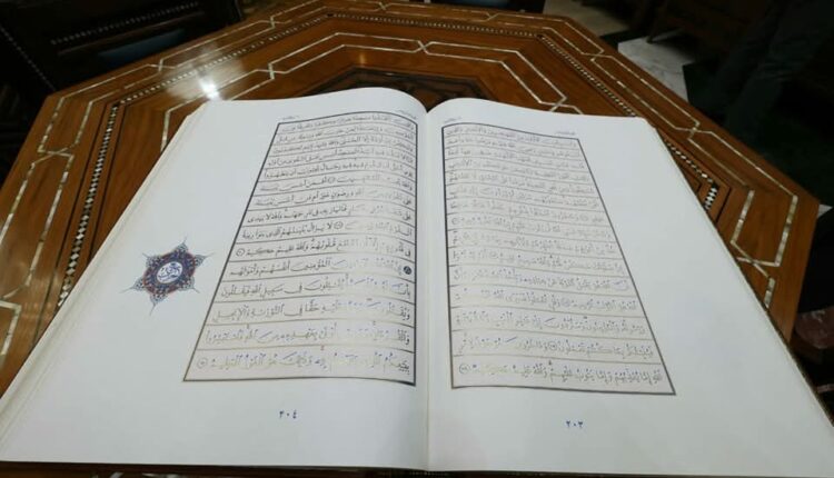 استغرق العمل عليه ٢٠ عامًا ويزن ٣٥ كيلو، جناح الأزهر يقدم لزوَّاره لأول مرة مصحفًا فريدًا بزخارف فنية مبدعة