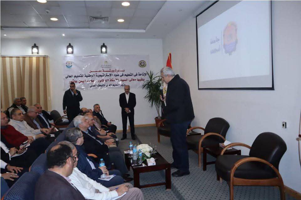 شارك الأستاذ الدكتور/ إلهامي ترابيس ـ رئيس جامعة دمنهور، بورشة عمل حول “الإتاحة في التعليم في ضوء الإستراتيجية الوطنية للتعليم العالي والبحث العلمي”،