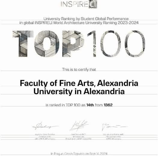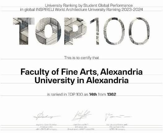 اختيار كلية الفنون الجميلة جامعة الإسكندرية ضمن أفضل 100 جامعة في الهندسة المعمارية على مستوى العالم 2024 ضمن تصنيف INSPIRELI AWARDS,10th