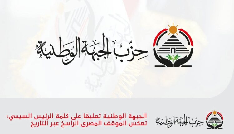 الجبهة الوطنية تعليقا على كلمة الرئيس السيسي: تعكس الموقف المصري الراسخ عبر التاريخ