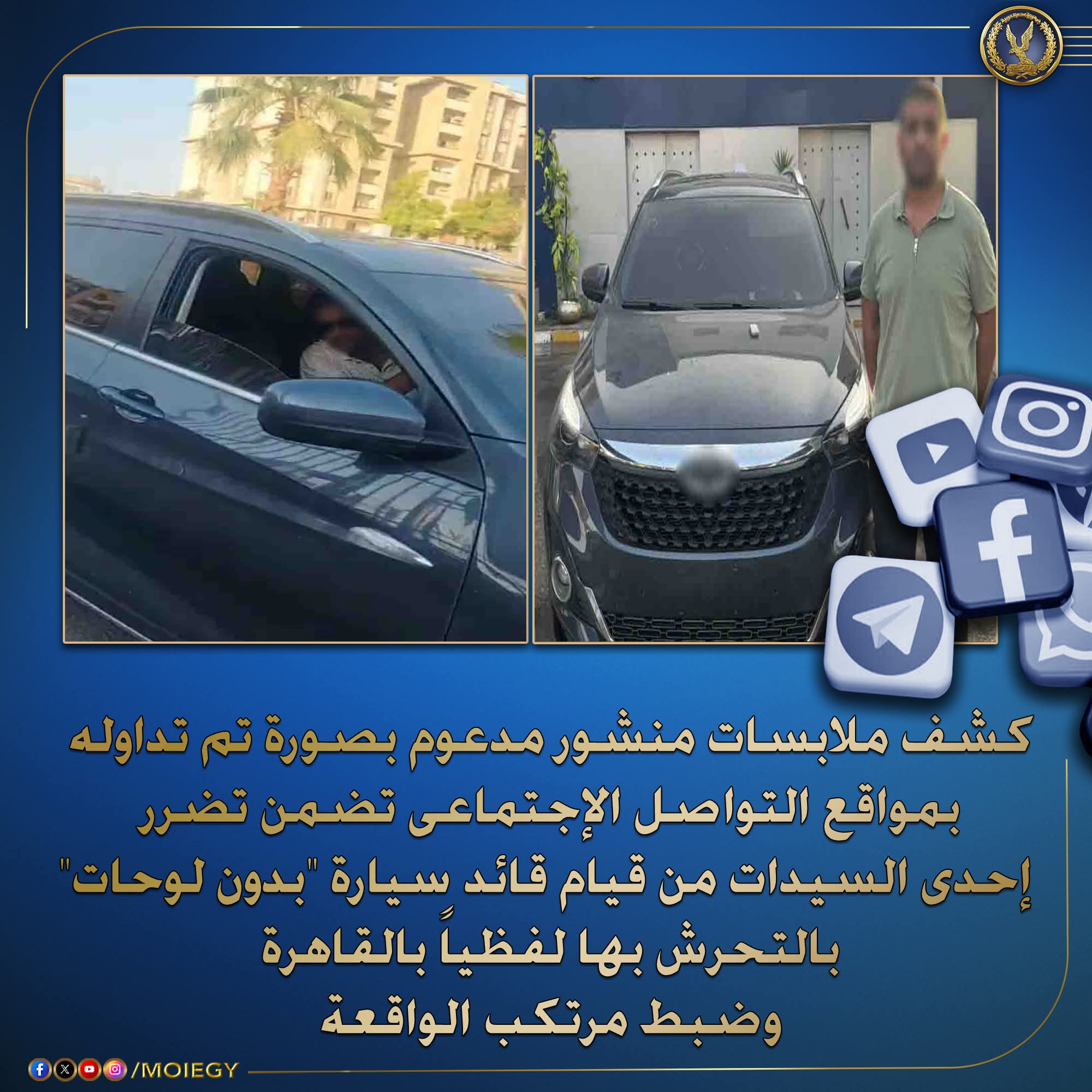 حيث تضمن المنشور تضرر إحدى السيدات من قائد سيارة “بدون لوحات” بالتحرش بها لفظياً بالقاهرة.