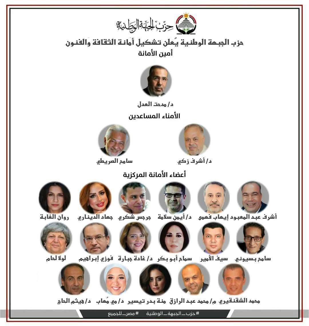 وأكد الحزب أن تشكيل الأمانة يعكس حرصه على ضم نخبة من المبدعين والرموز الثقافية والفنية من مختلف المجالات، بما يسهم في دعم دور الثقافة والفنون كقوة ناعمة أساسية في بناء الوعي وتعزيز الهوية الوطنية.